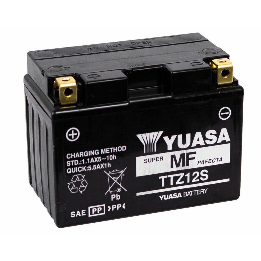 The YUASA TTZ12S motorcycle battery of 11AH(10hr) and 11.6AH(20hr) is the highest performance and maintenance-free battery of Japanese technology for motorcycles such as Kawasaki Versys 650, Suzuki V-Strom 650, Yamaha XT7 1200 Tenere, Yamaha Tmax 530. With AGM Plus technology, this battery offers the highest starting force on the market, more power, no maintenance and a longer life thanks to its additional YUASA plates.